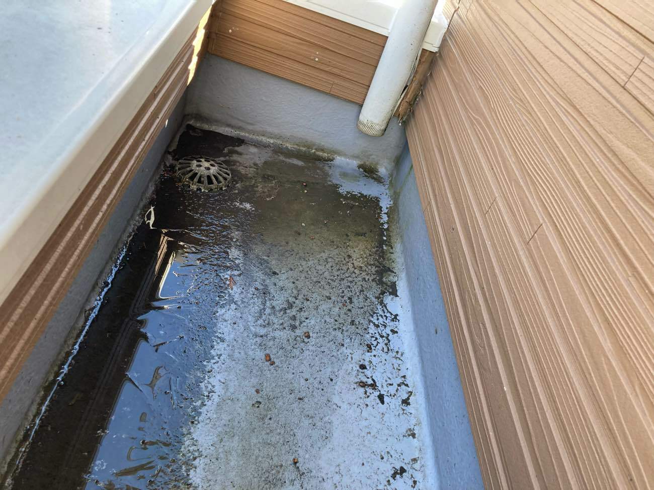 | お客様より以下のご相談をいただきました。 ・玄関上のテラスに雨水が溜まりやすいので、適切な傾斜をつけてほしい。 ・新築から10年以上経過しており、シリコンとフッ素の性能や価格や塗料の機能などいろいろ聞きたい。 |